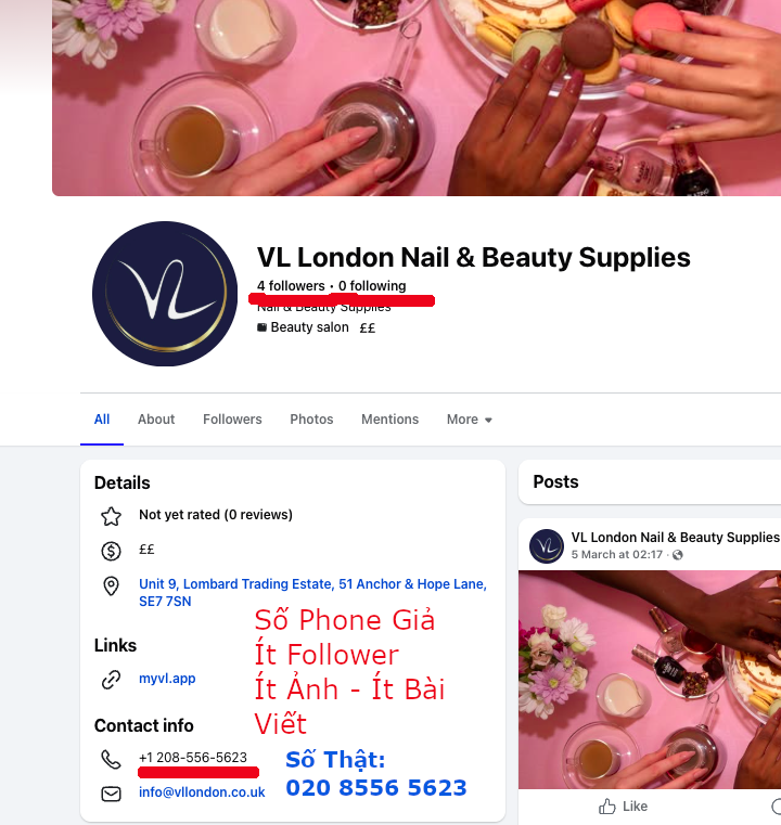 Facebook Giả có tên giống hệt cái cũ: VL London Nail & Beauty Supplies
